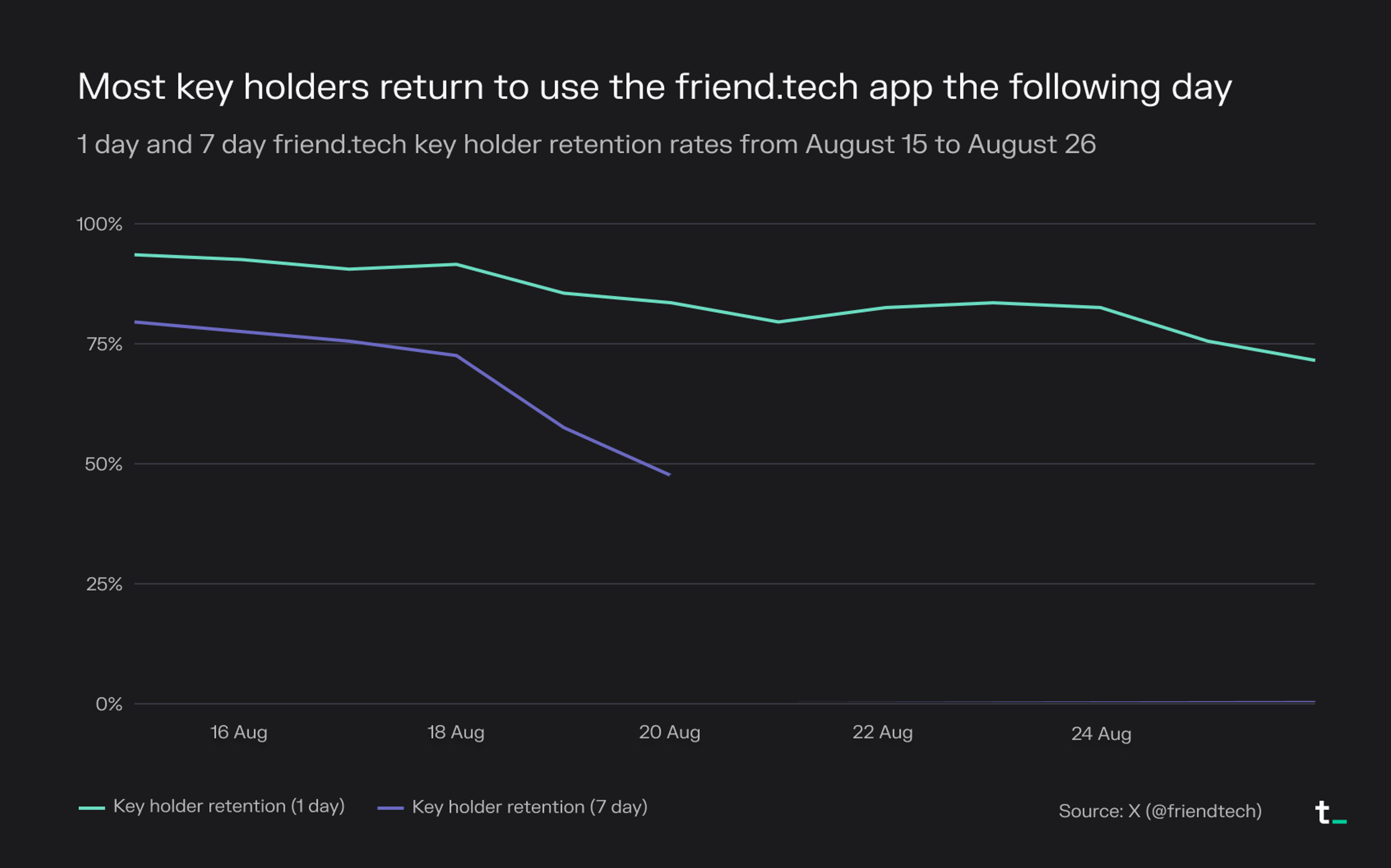 Figure 6: friend.tech 1 day and 7 day key holder retention [14]