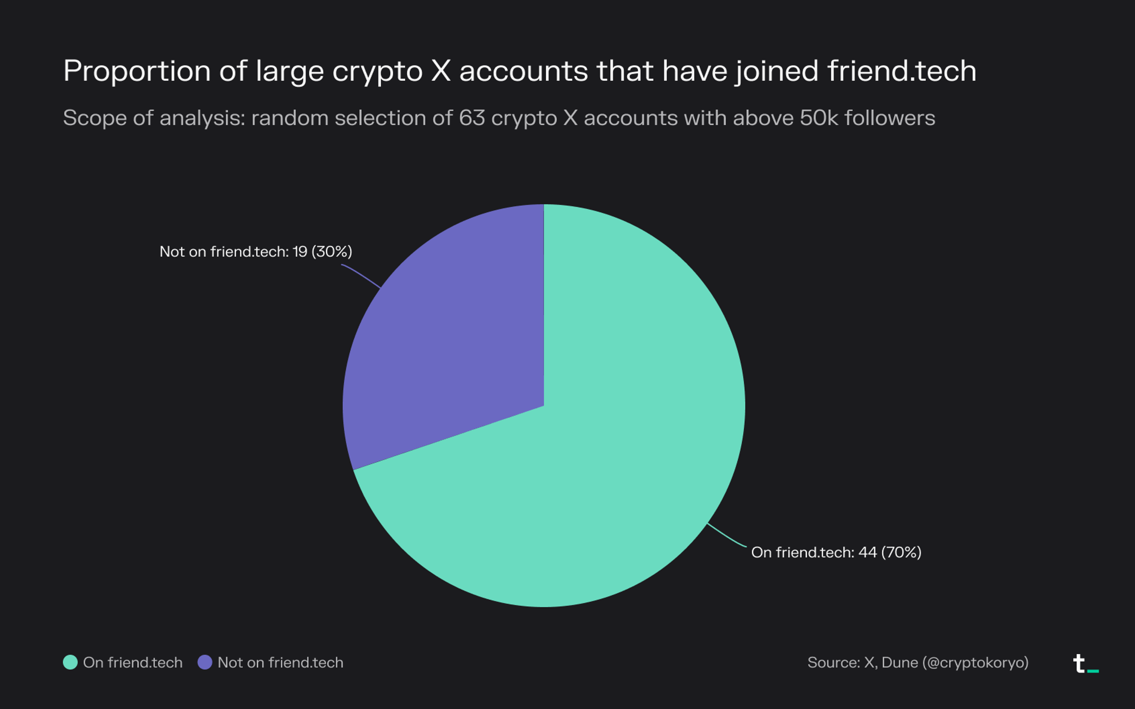 Figure 10: 70% of crypto X accounts with over 50k followers have already joined friend.tech [18]