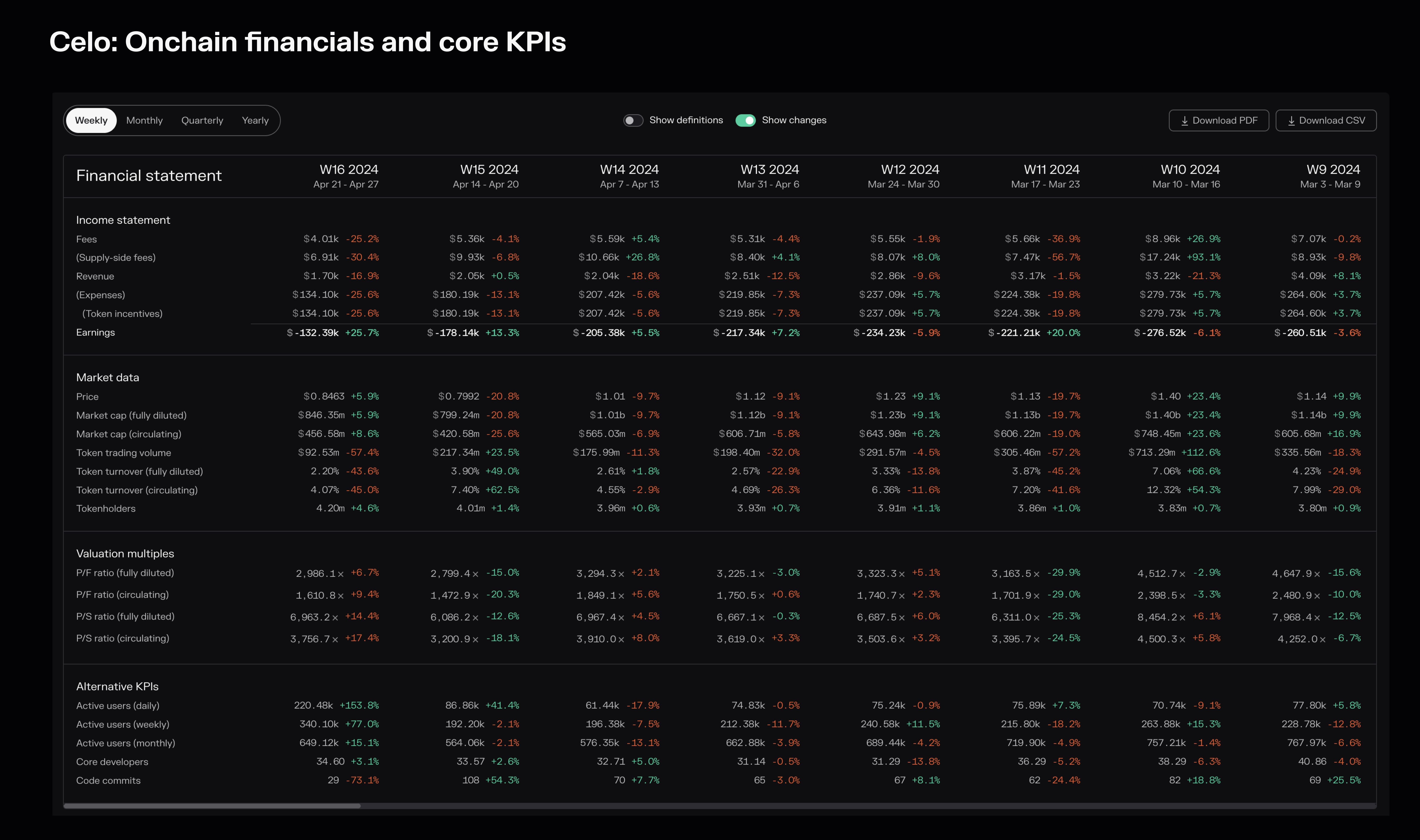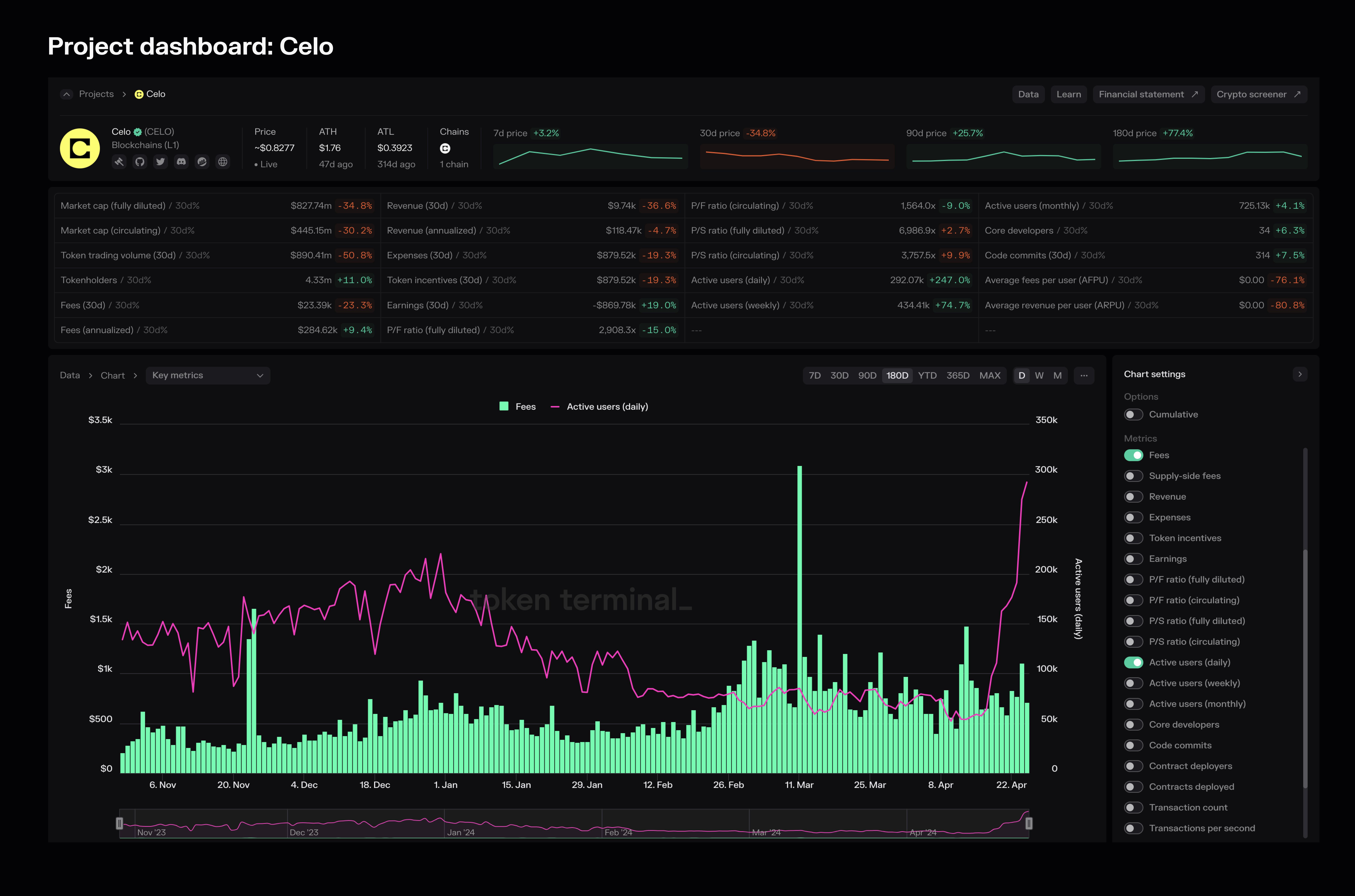 Token Terminal has completed its integration of Celo to enable institutional-grade onchain analytics for the Celo network. This integration improves the accessibility of Celo’s onchain data to enable more informed decision-making for all stakeholders in the ecosystem.