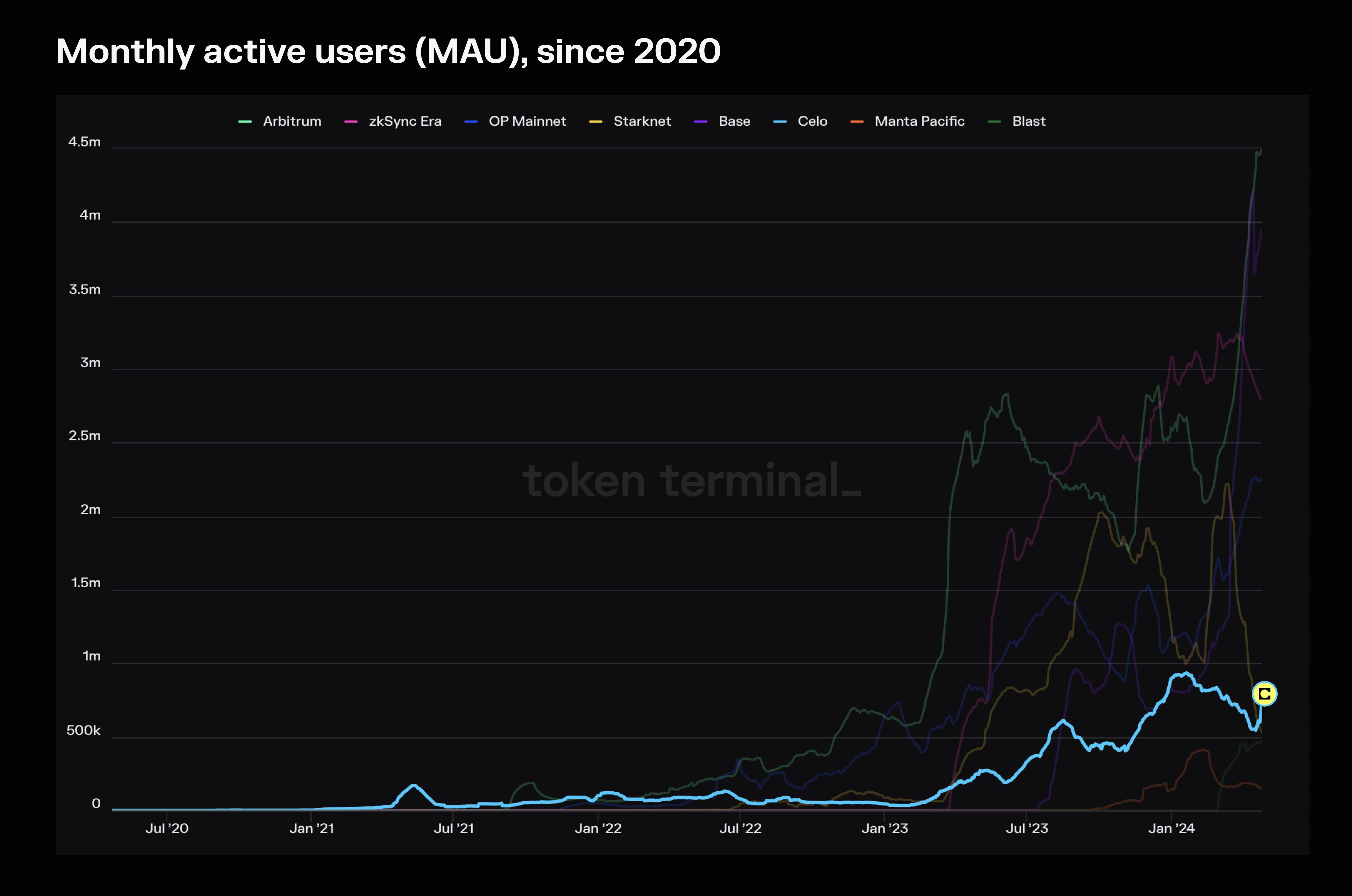- As a result of our fullstack approach, Celo’s data can be accessed also on the Bloomberg Terminal and CELO, the network’s native token, is eligible to be included in Token Terminal-powered cryptoasset index products.