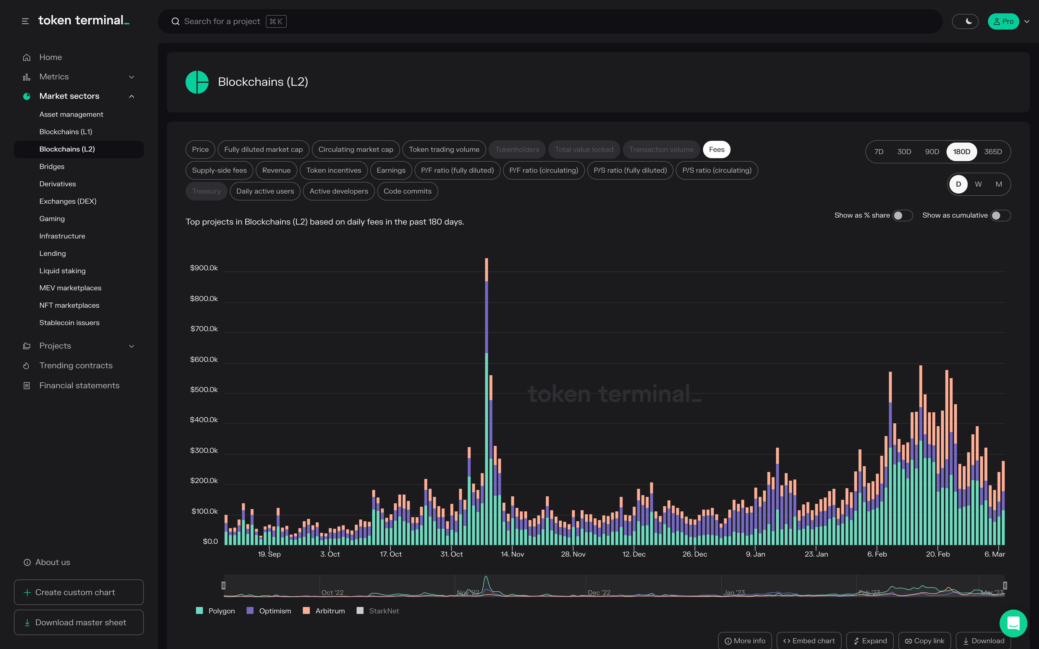 Source: https://tokenterminal.com/terminal/markets/blockchains-l2