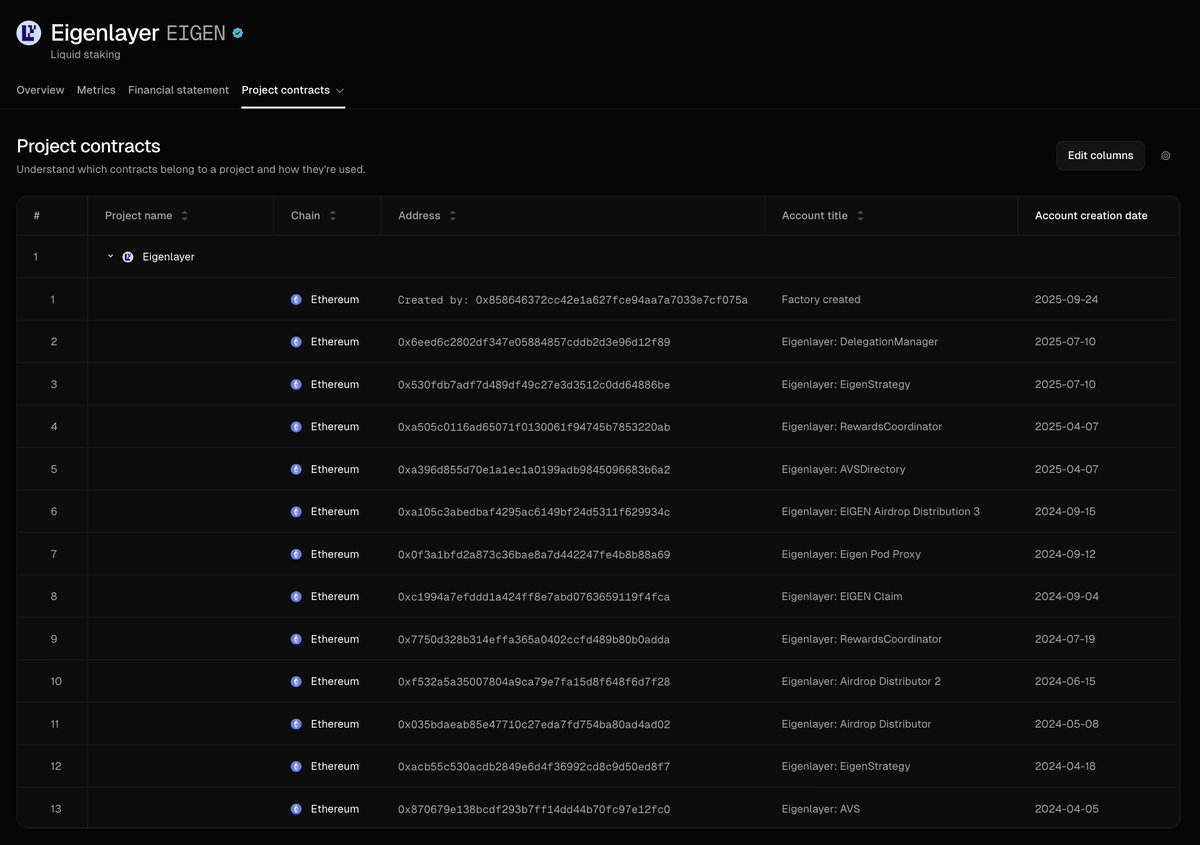 Token Terminal works with EigenCloud to maintain a labeled registry of the project's smart contracts across chains.