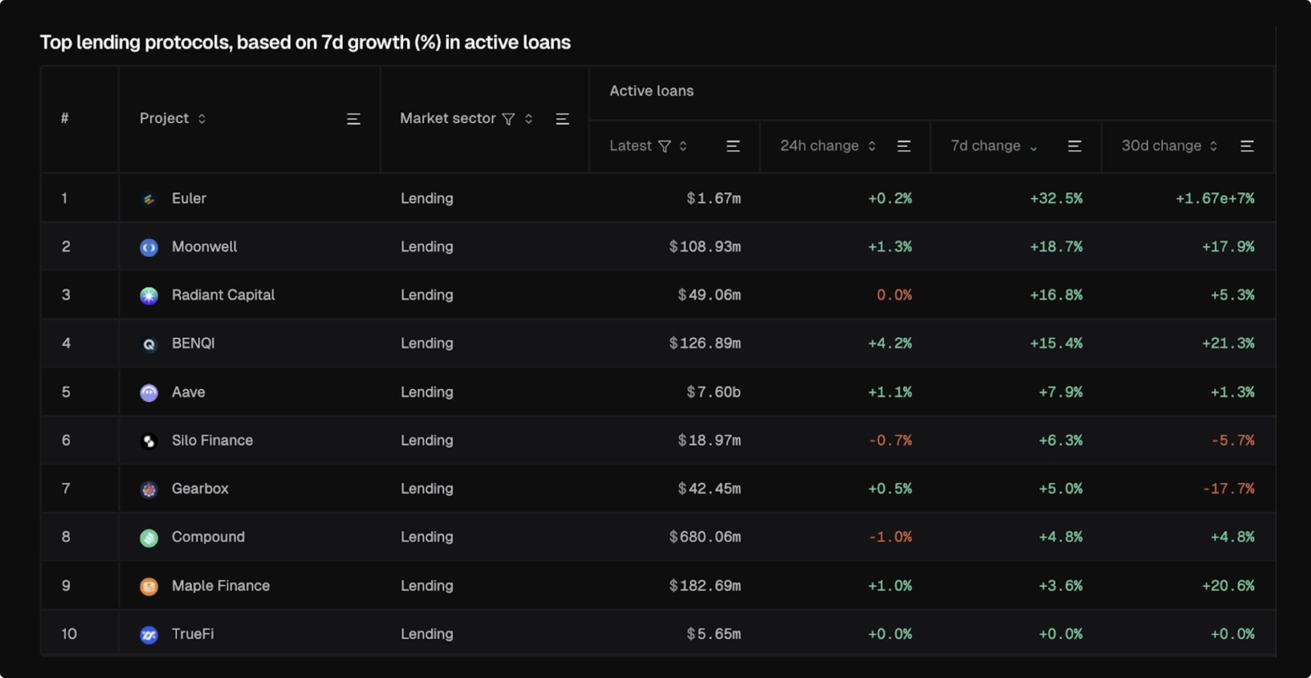 For Euler, a lending platform, these metrics include net deposits, active loans, fees, revenue, daily active users, and additional data points essential for comprehensive on-chain analytics.