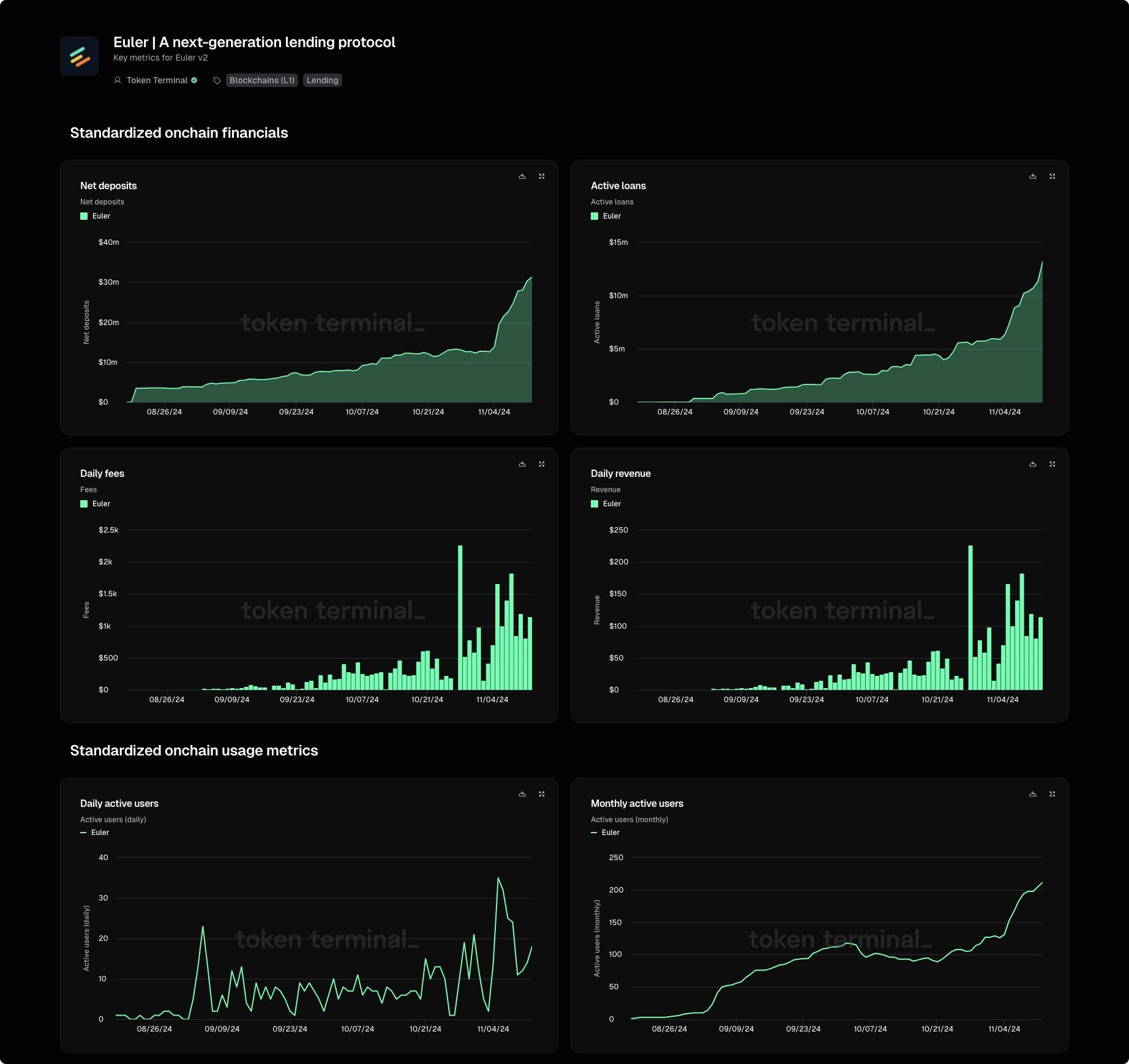 For Euler, the dashboards on Token Terminal streamline the reporting to existing and future stakeholders.