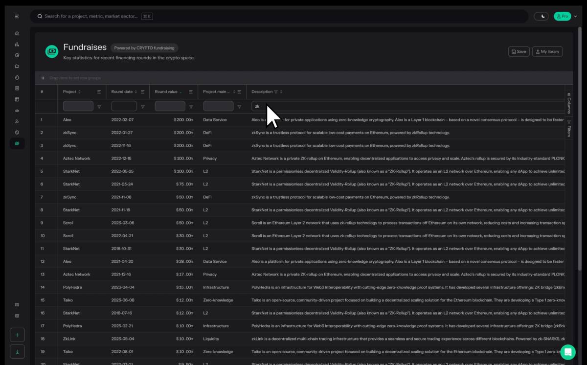 - What? A data table with granular information on ~2,400 (and counting!) fundraising rounds in crypto.