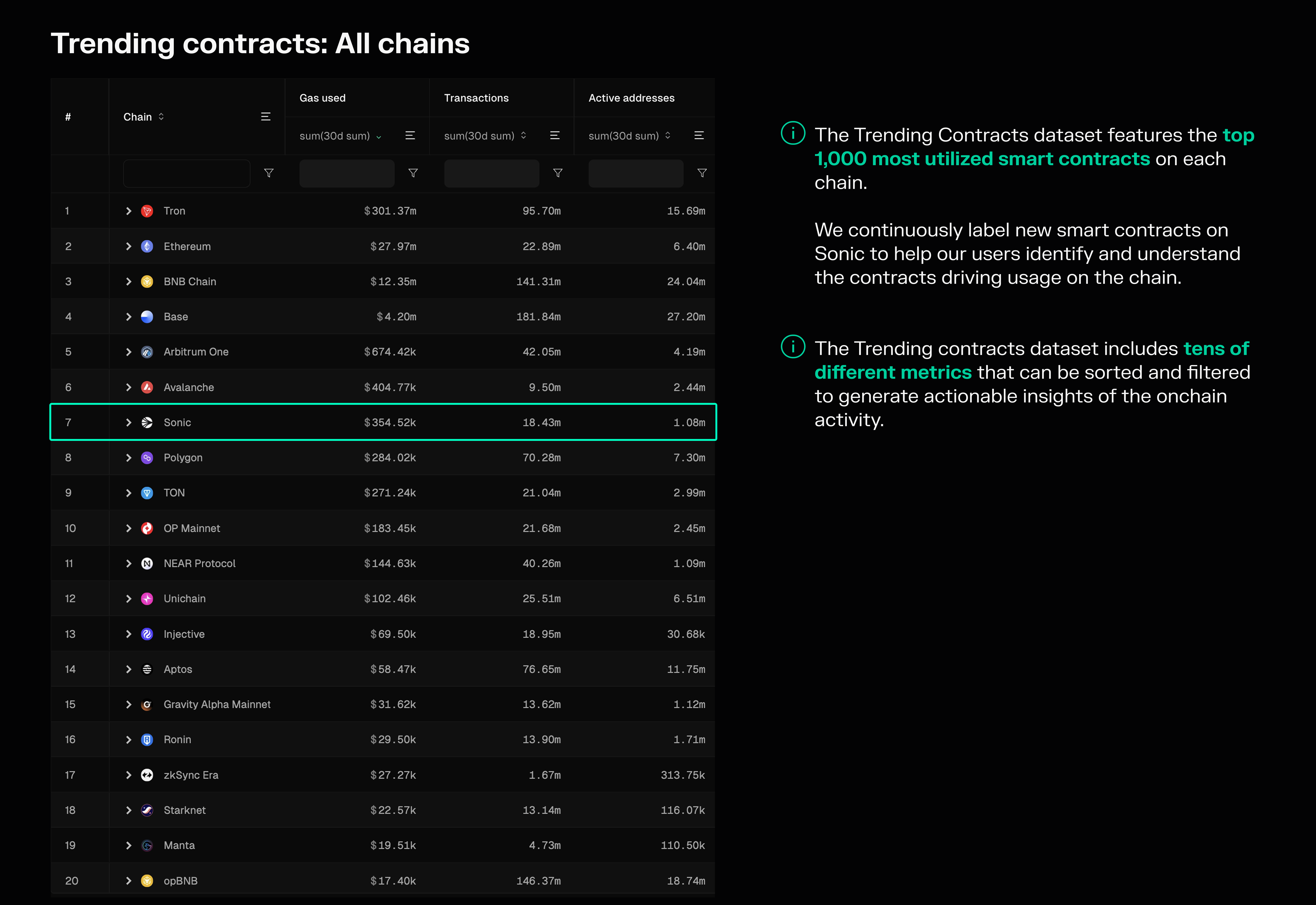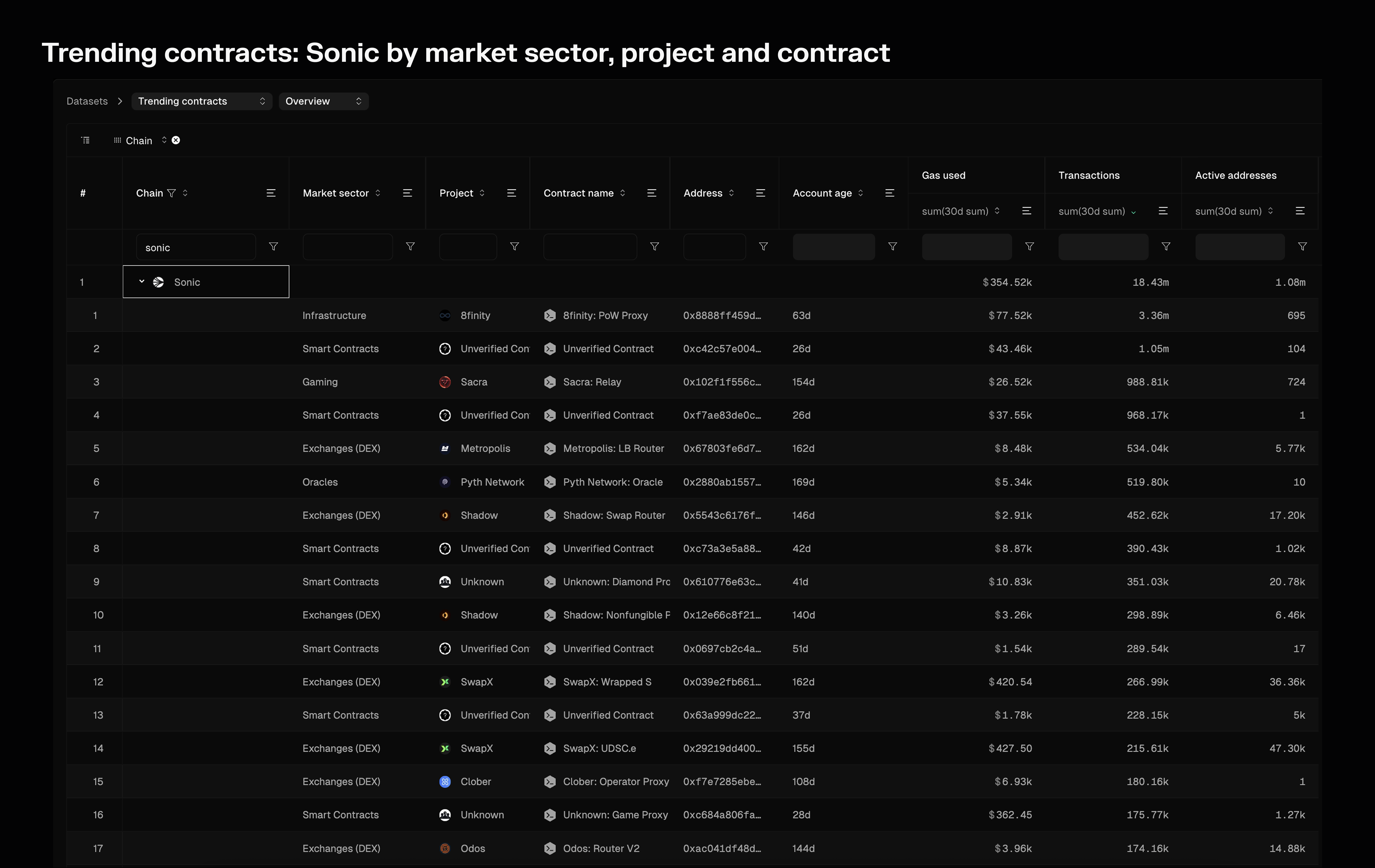 2. Chain dashboards: Access Sonic's onchain data on multiple levels, from chain to contract views