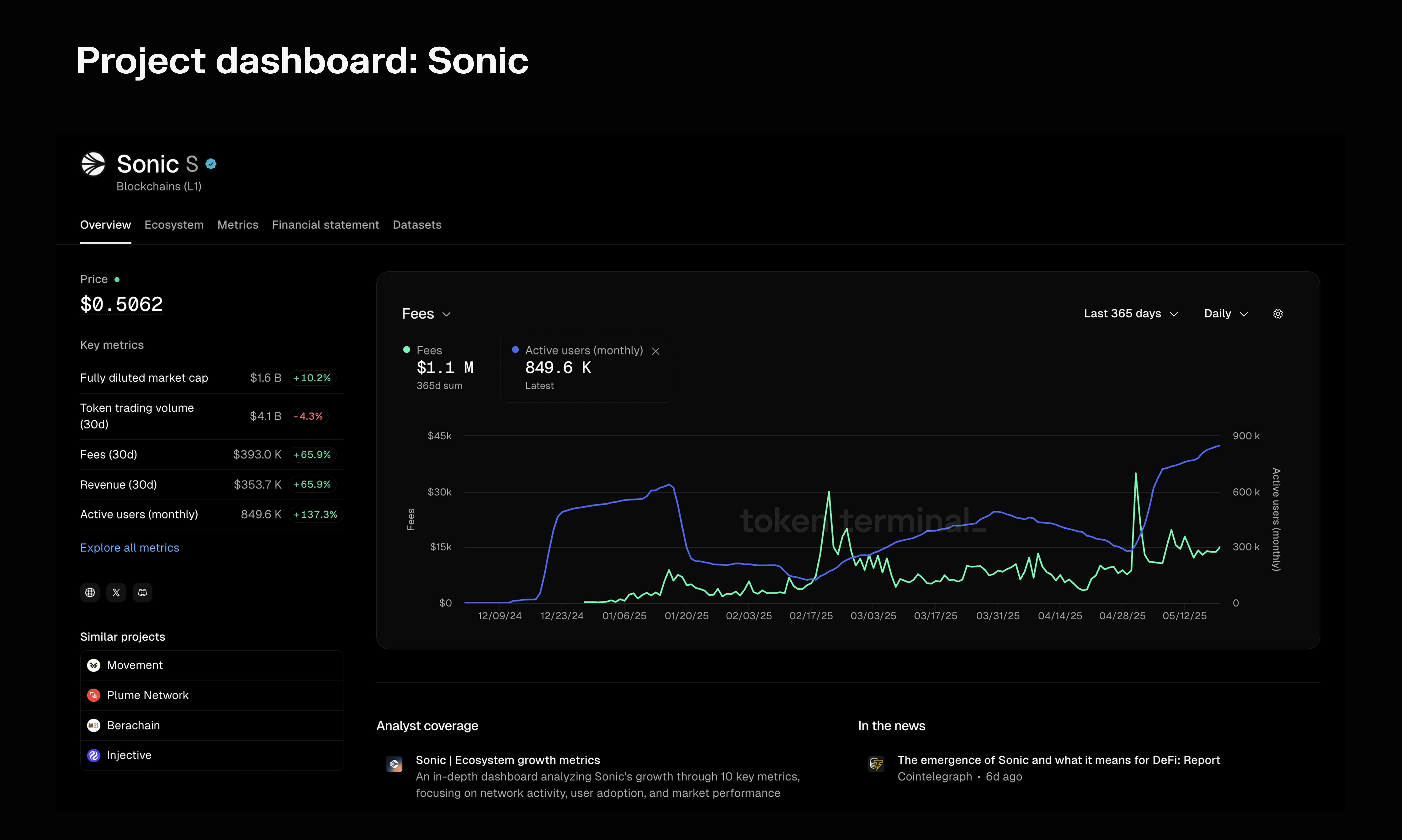 - Token Terminal’s unique fullstack operating model allows us to serve Sonic's standardized onchain datasets to the world’s premier financial data companies and investment firms.