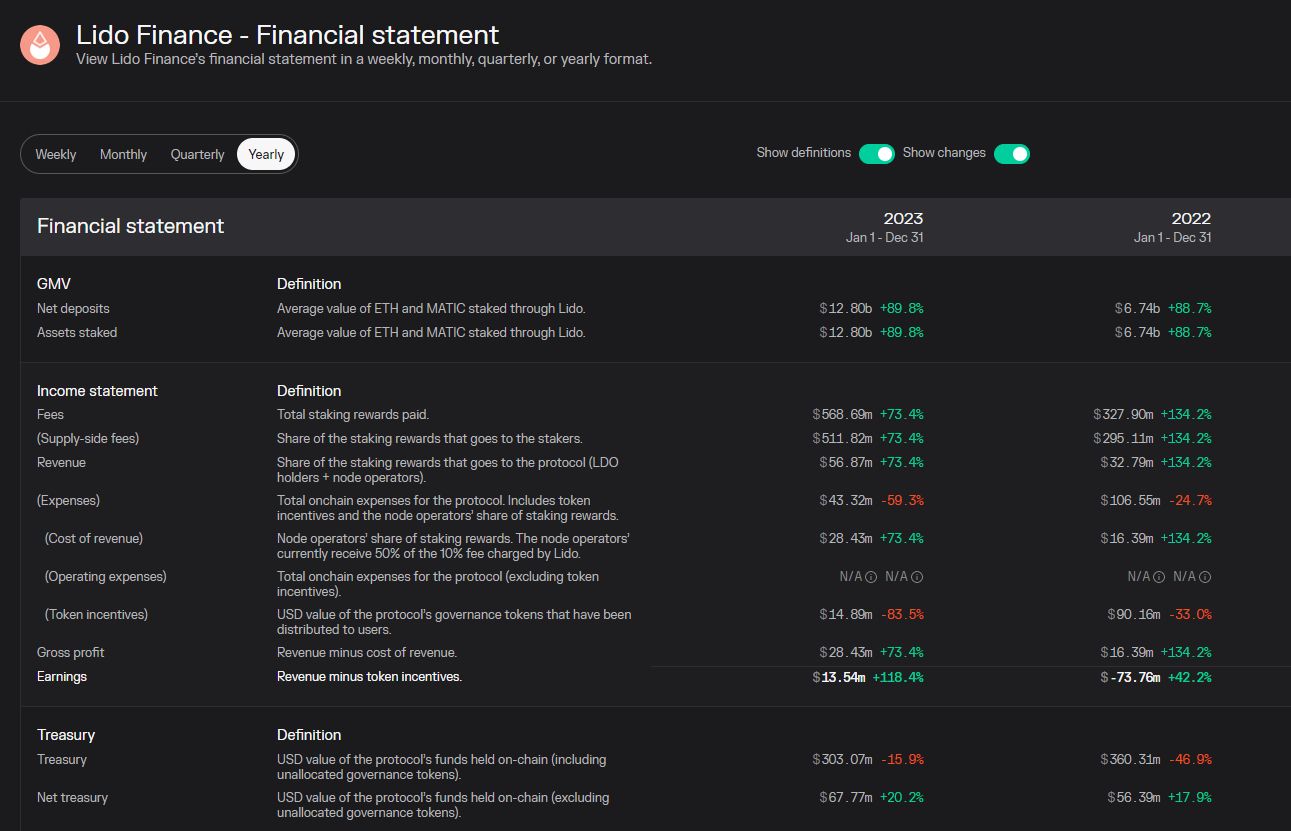 Below we have Lido’s (the largest liquid staking solution on Ethereum) financial statements over the last few years: