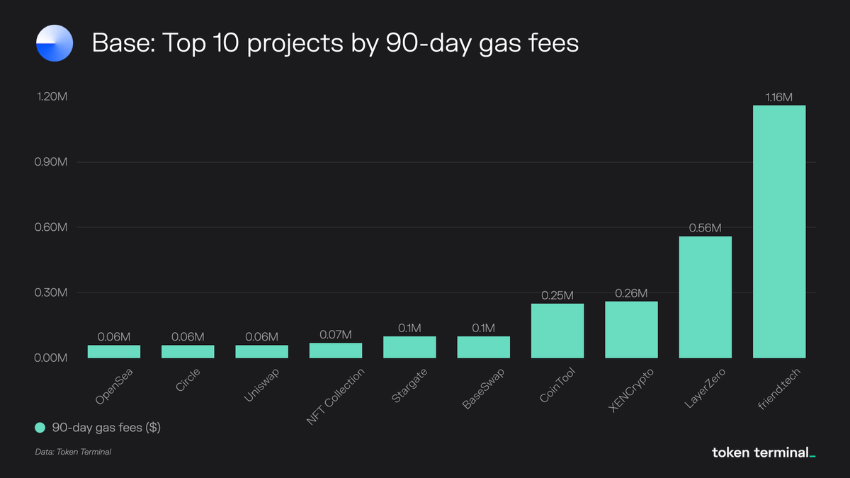 - Revenue: Base comes in at #3 with Arbitrum outpacing them by 28%, and Optimism by 3.5%.