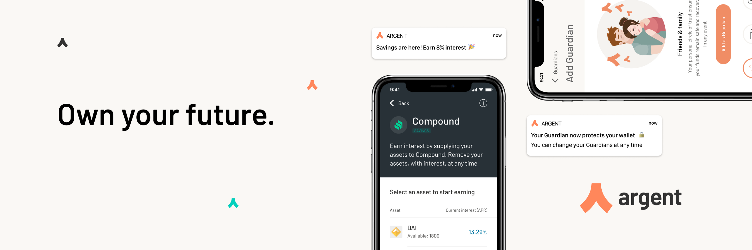Argent is a non-custodial wallet for Ethereum with the simplicity and security of the best new bank apps. It makes it significantly easier to use decentralized finance (DeFi) Dapps, such as Maker and Compound. And it removes a lot of the other big pain points in crypto, like seed phrases and gas.