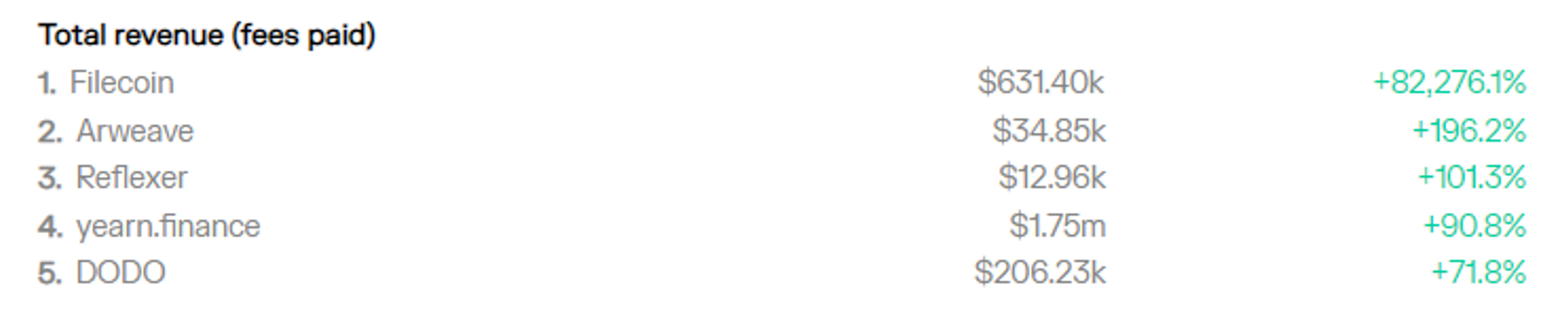 *Note: We have excluded dapps & blockchains with revenue figures under $10k/week.**Note:‘change’ is calculated as a snapshot comparison, whereas ‘trend’ is calculated by comparing the given time interval against its previous time interval.