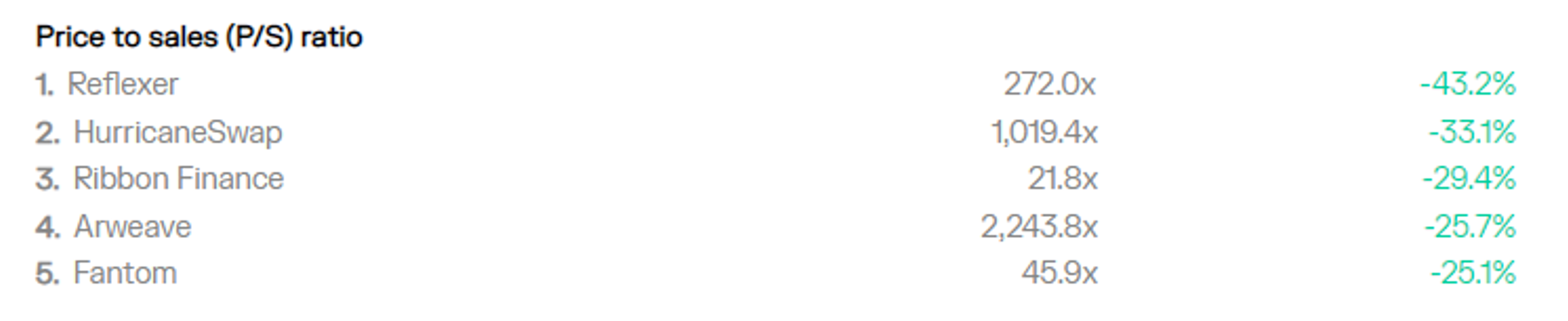 Top projects by latest P/S ratio
