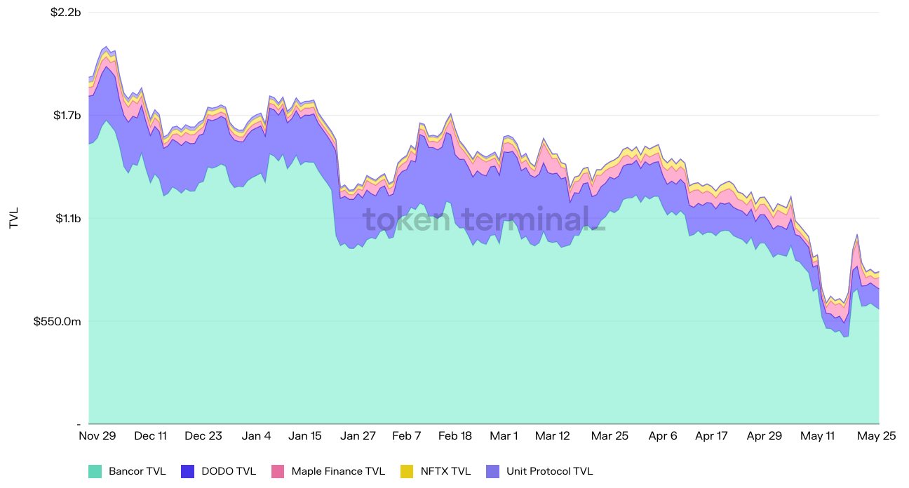 - Total trading volume on NFT marketplaces such as OpenSea and LooksRare has decreased by 30% week-over-week. As a result, we’ve seen NFTX – the liquidity protocol for NFTs – gain traction among traders looking for liquidity.