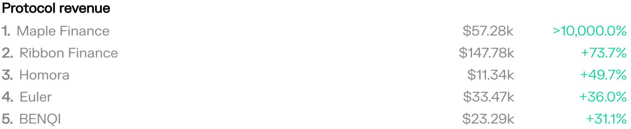 This week’s top gainers by protocol revenue