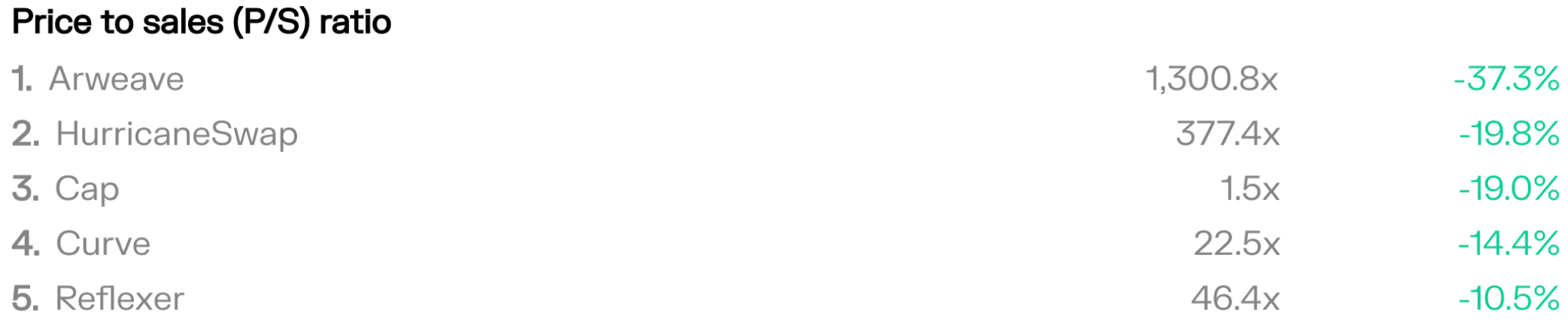 Top projects by latest P/S ratio