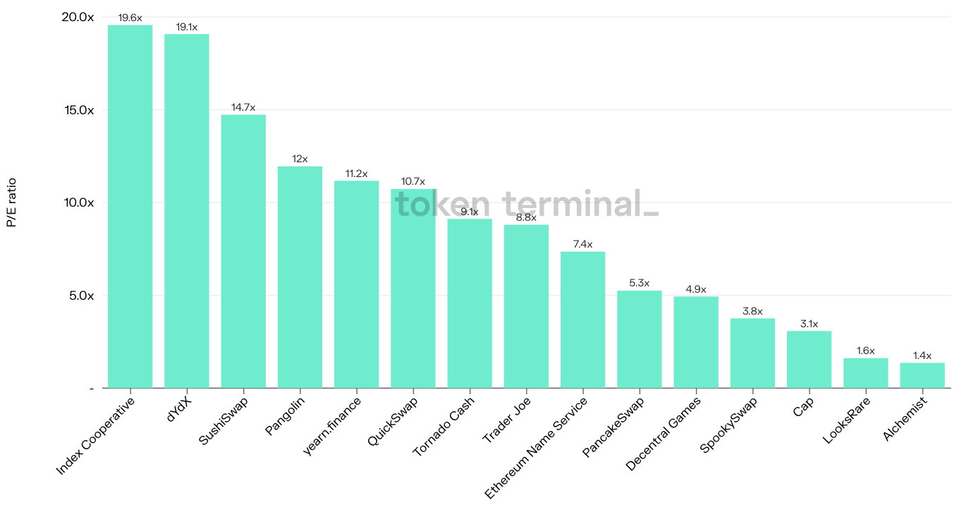 The 'E' in the P/E ratio is based on protocol revenue, i.e. the share of the total revenue that accrues to the benefit of token holders or the company behind the protocol.