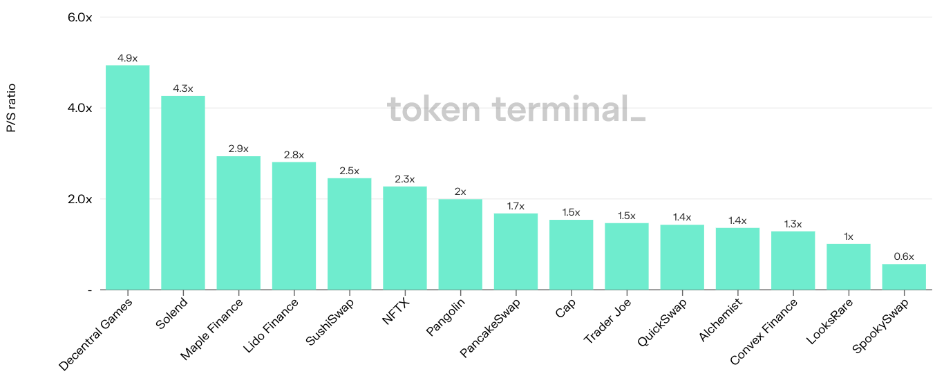 - The play-and-earn space has been hit hard, with e.g. Axie Infinity’s P/E ratio doubling over the last week.