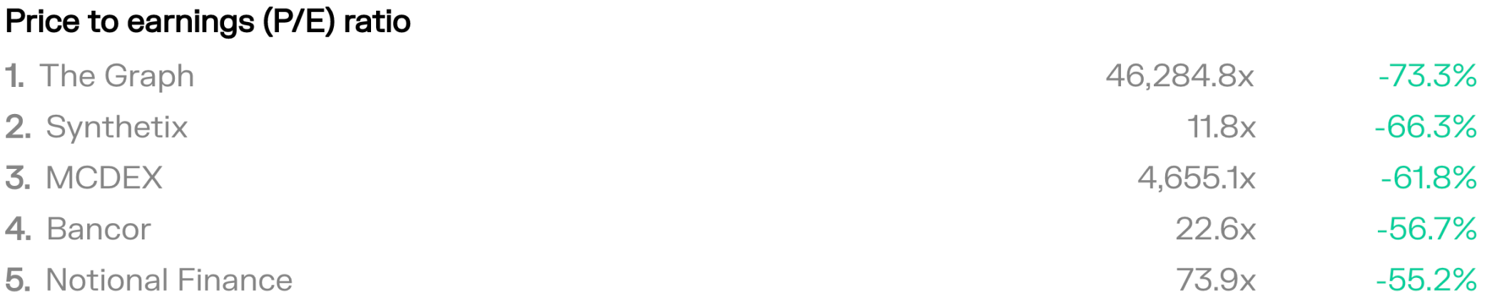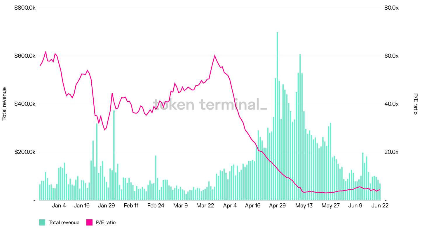The 'E' in the P/E ratio is based on protocol revenue, i.e. the share of the total revenue that accrues to the benefit of token holders or the company behind the protocol.
