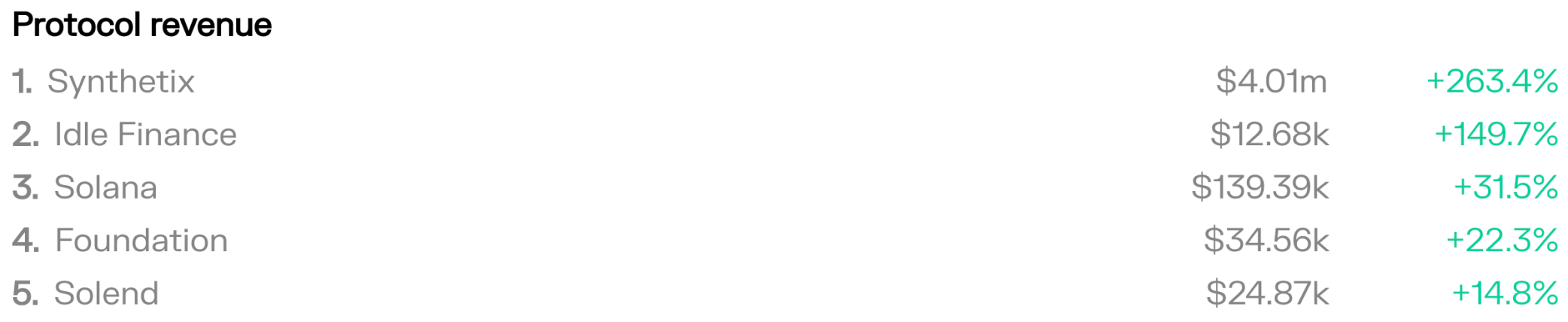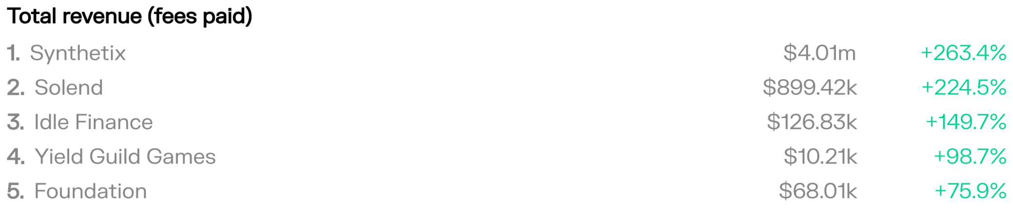 *Note: We have excluded dapps & blockchains with revenue figures under $10k/week.**Note:‘change’ is calculated as a snapshot comparison, whereas ‘trend’ is calculated by comparing the given time interval against its previous time interval.