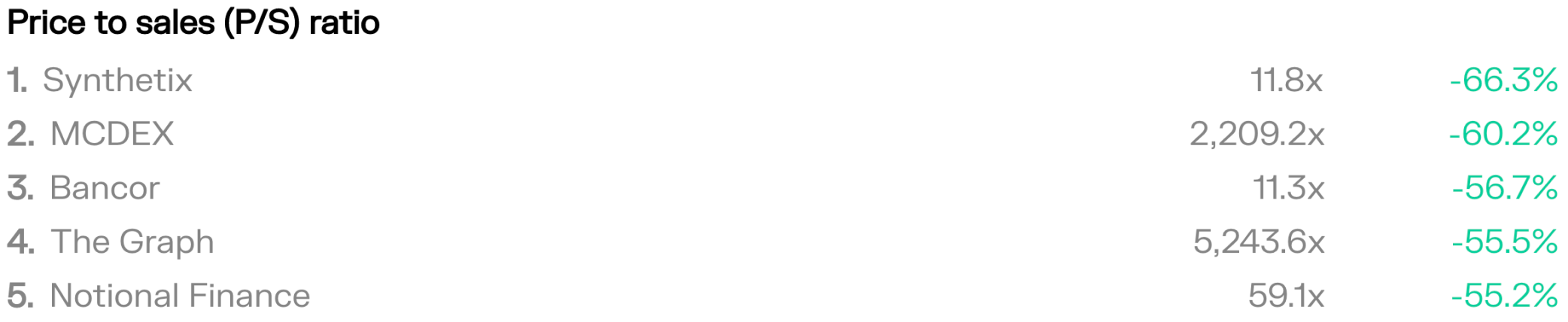 - Many projects have low P/S ratios (fd. market cap / annualized fees). Although, it’s always worth considering how much of the fee revenue or usage is tied to token incentives that are paid to users – a data point that we’re actively working on including in all of our dashboards.
