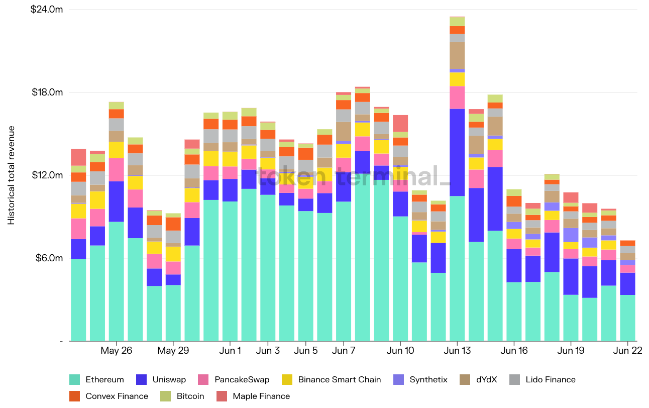 - As more applications start to expand and go multi-chain, it’s possible that they surpass Ethereum (or any single underlying blockchain they're using) in total fee revenue.