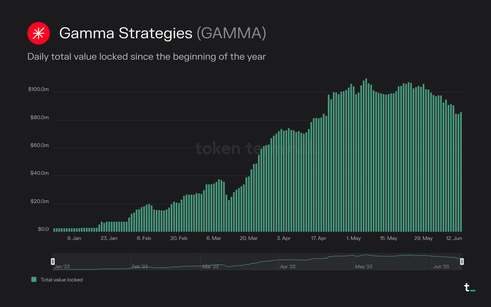 - Gamma Strategies has emerged as the top protocol specializing in active liquidity management, with the total value locked (TVL) growing from $2.7M to $84.6M year to date. The surge in demand for active liquidity management, largely driven by Uniswap V3's concentrated liquidity mechanism, has been well capitalized on by Gamma Strategies.