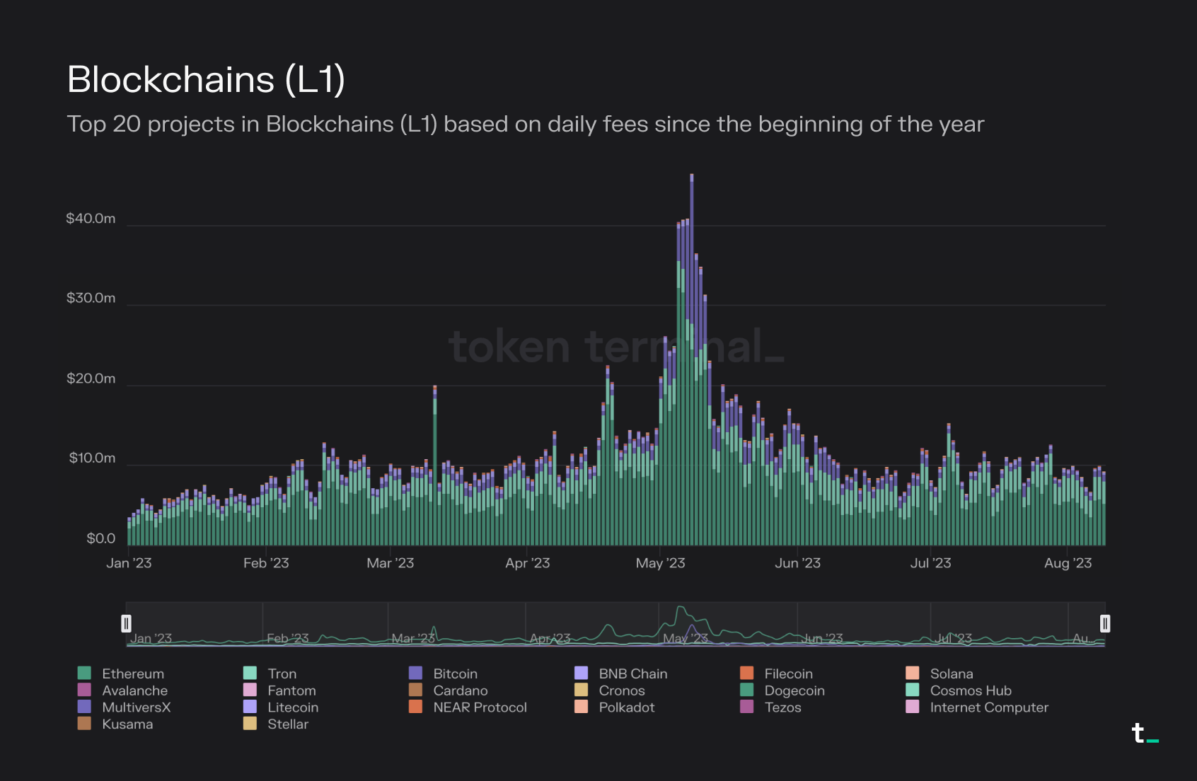 This week’s newsletter focuses on the blockchains (L1) market sector, which has a designated dashboard on Token Terminal. Let’s dig in!