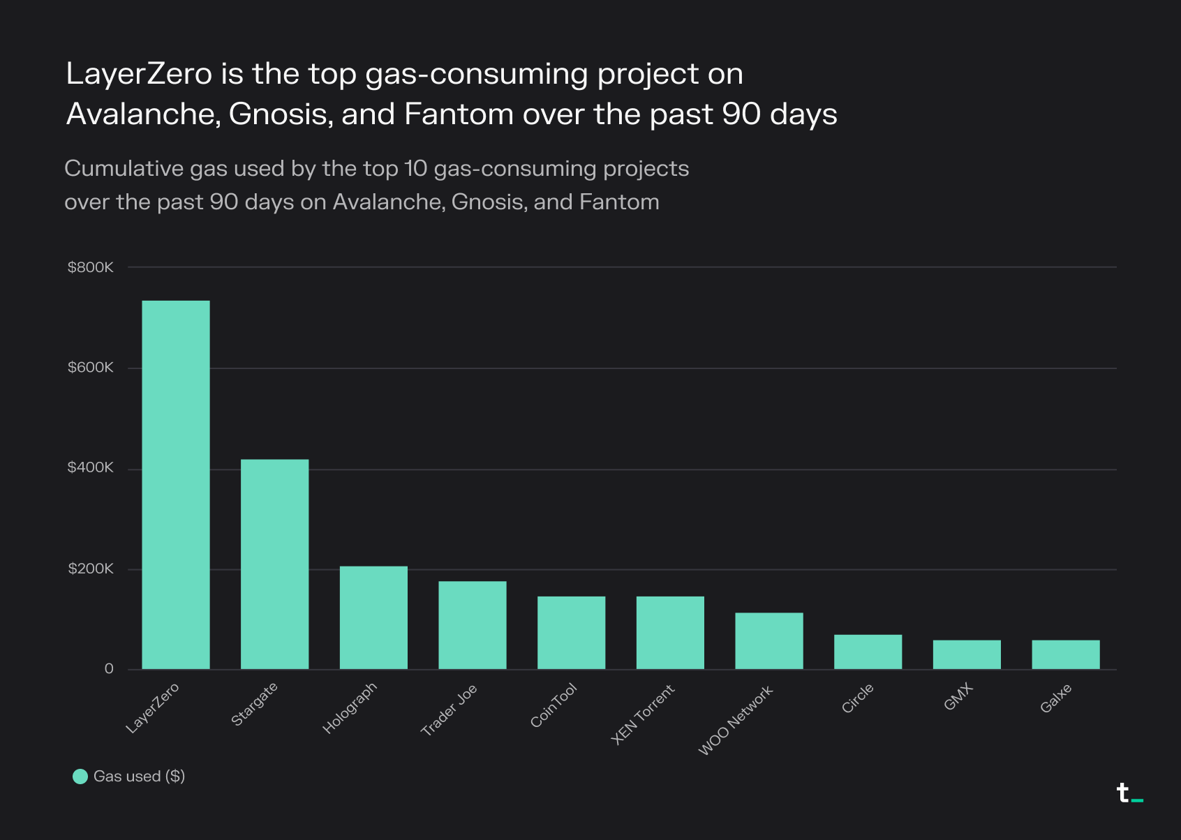LayerZero is the top gas-consuming project on Avalanche, Gnosis, and Fantom