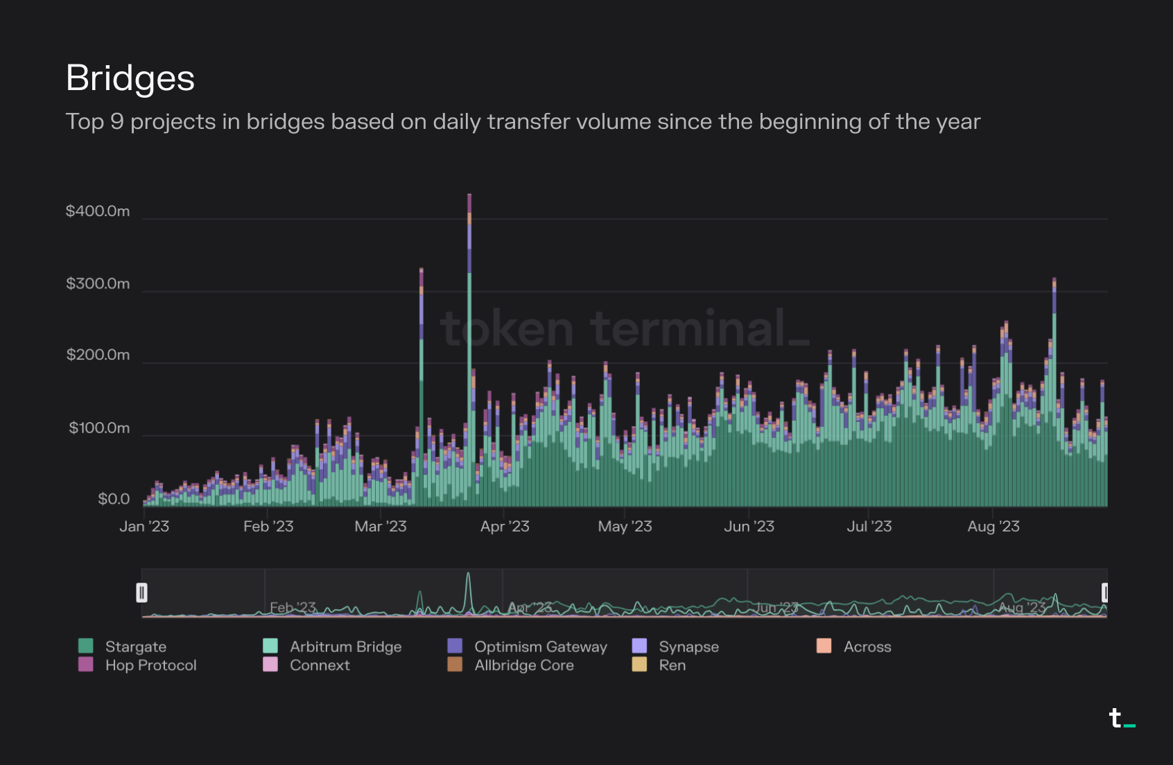 This week’s newsletter focuses on the bridges market sector, which has a designated dashboard on Token Terminal. Let’s dig in!