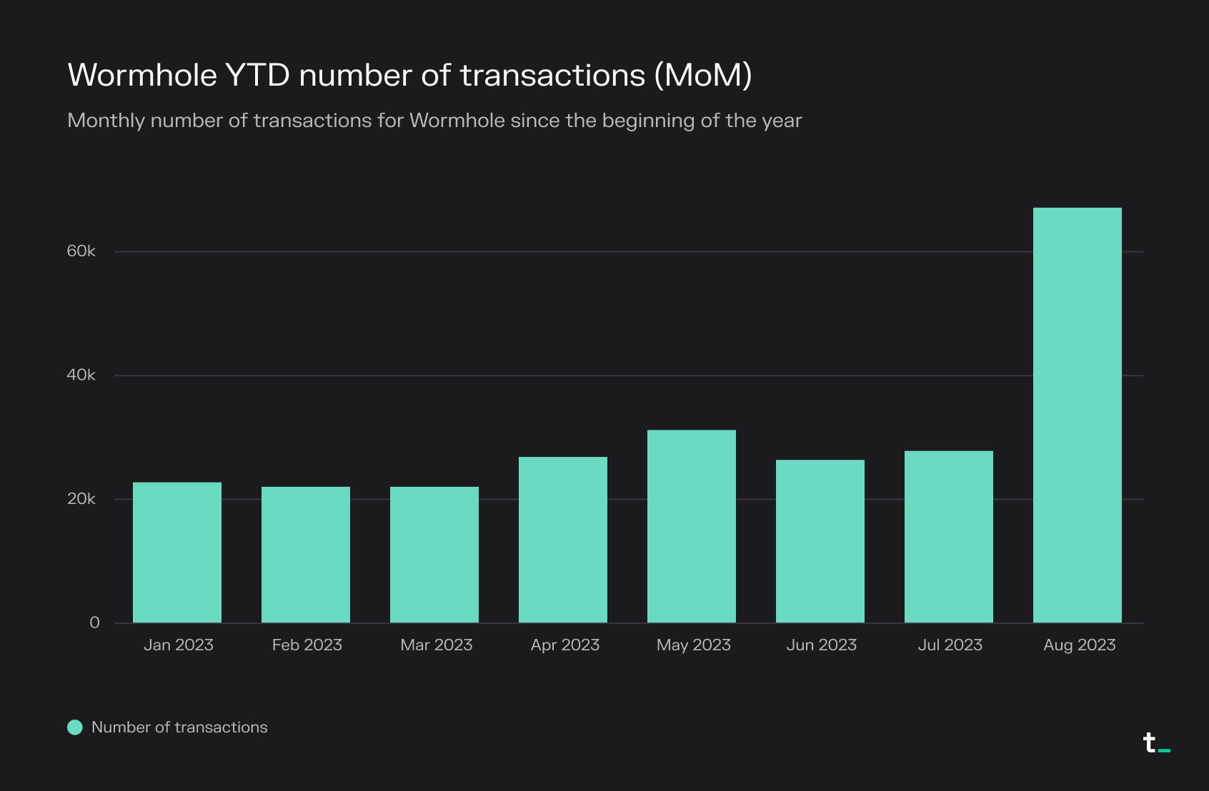 - Monthly transfer volumes have grown by over 360% year-to-date (YTD). Aggregated monthly transfer volumes grew from $1.1b to $5.1b between January 2023 and July 2023.