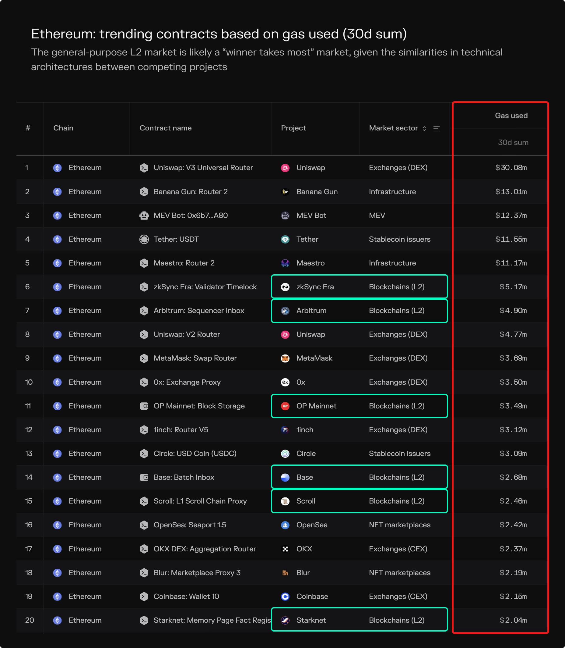 The general-purpose L2 market is likely a “winner takes most” market, given the similarities in technical architectures between competing projects.