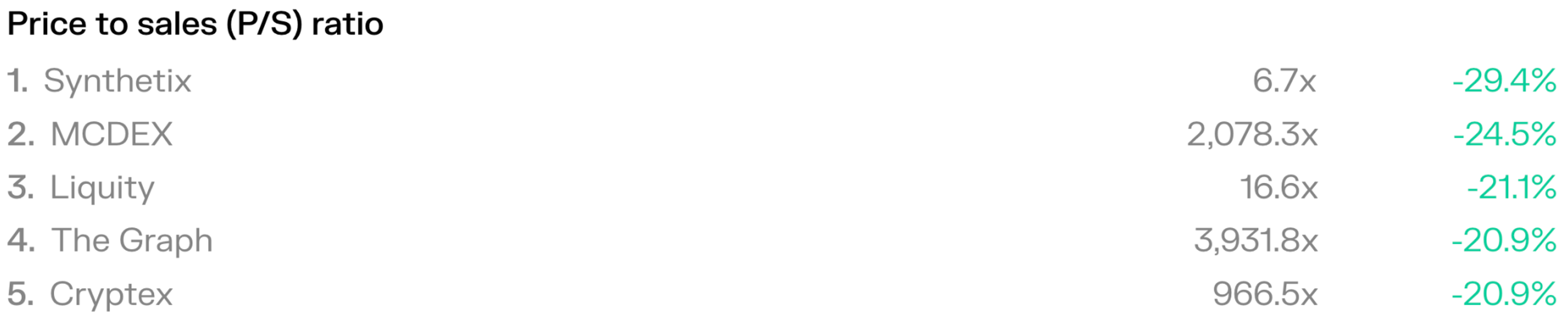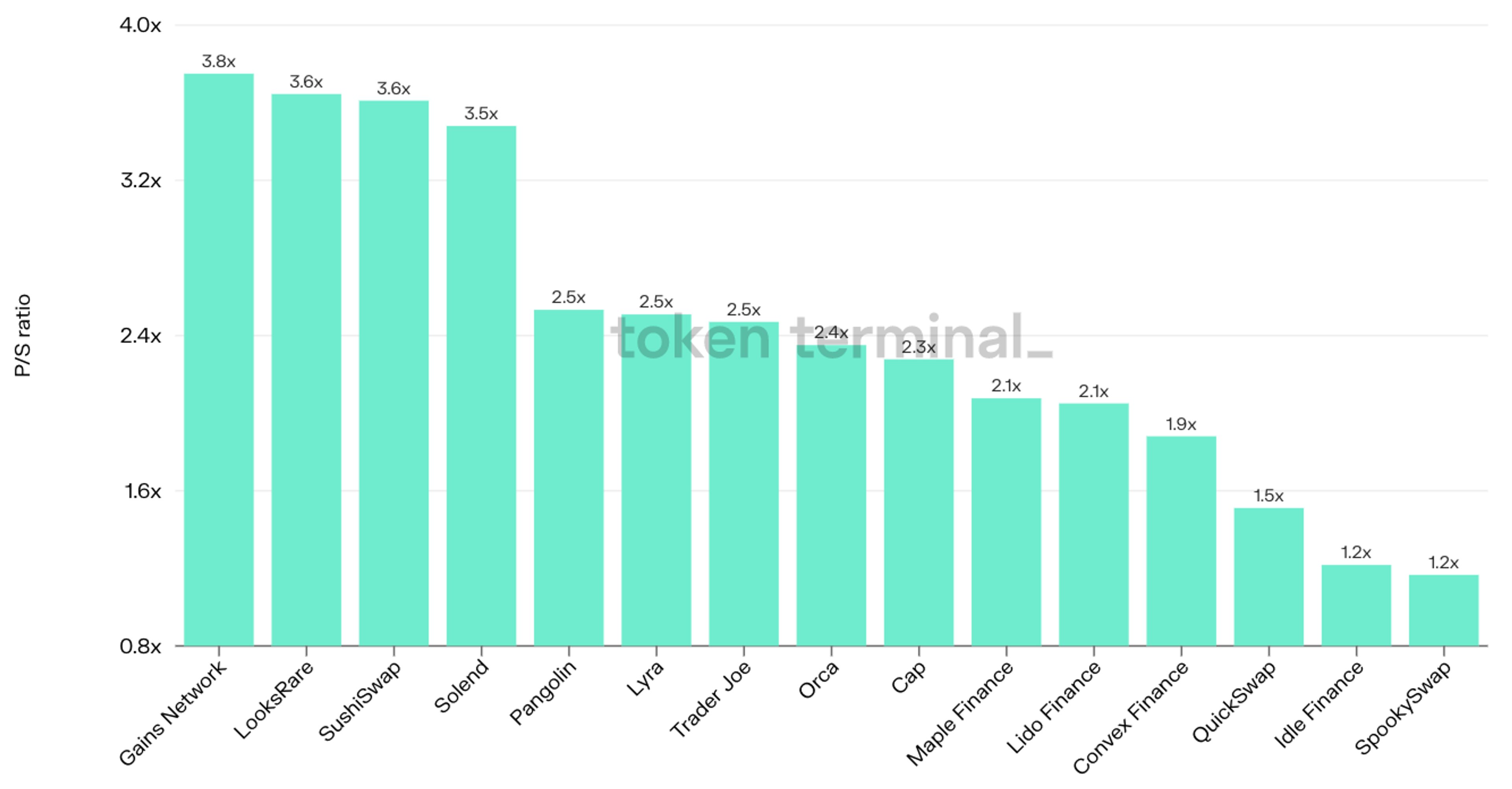 - The P/S ratio is an ideal valuation method, especially for early-stage protocols that often have little or no net income (because revenue is reinvested into growth, often by subsidizing the use of the protocol’s service).