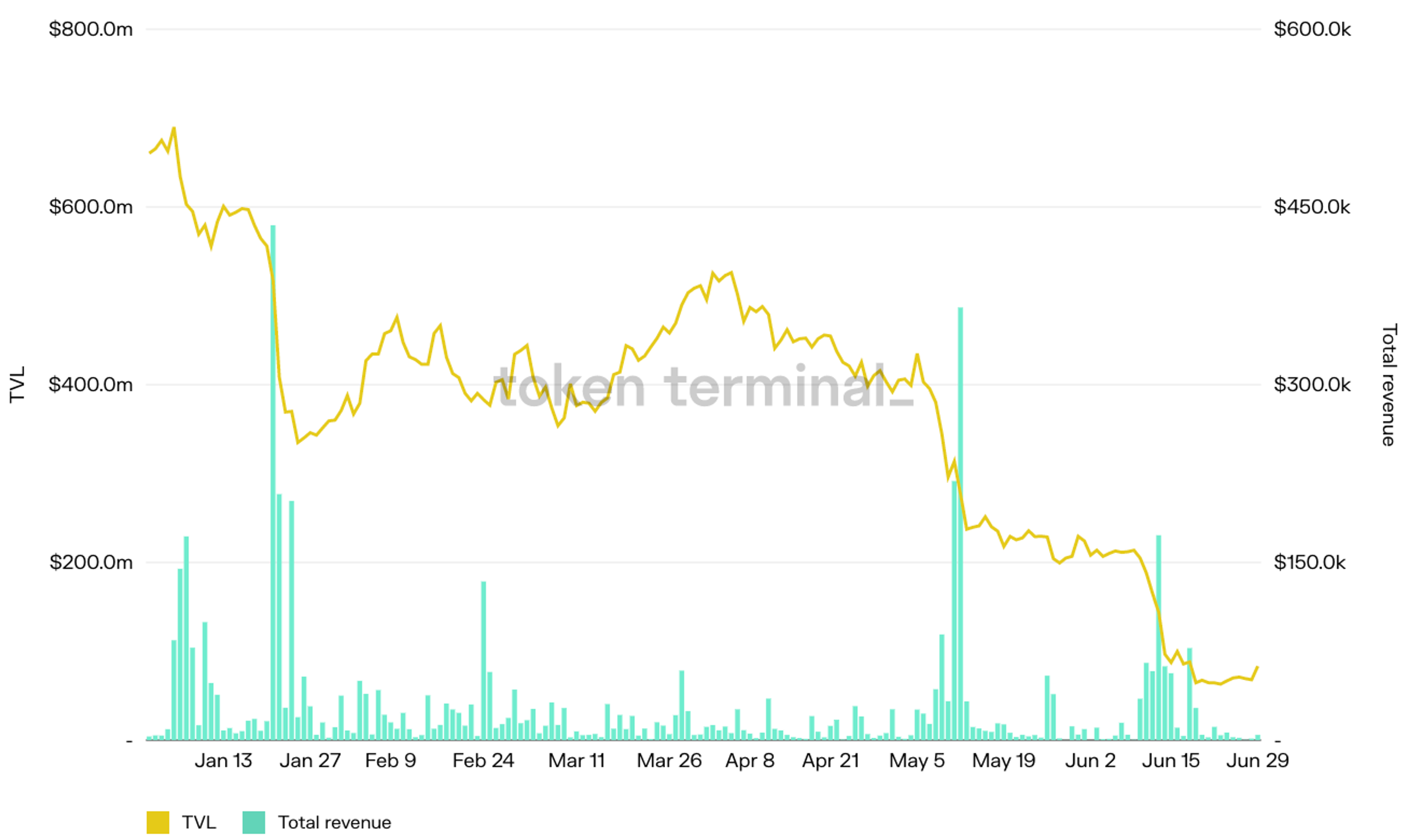 The authors of this content, or members, affiliates, or stakeholders of Token Terminal may be participating or are invested in protocols or tokens mentioned herein. The foregoing statement acts as a disclosure of potential conflicts of interest and is not a recommendation to purchase or invest in any token or participate in any protocol. Token Terminal does not recommend any particular course of action in relation to any token or protocol. The content herein is meant purely for educational and informational purposes only, and should not be relied upon as financial, investment, legal, tax or any other professional or other advice. None of the content and information herein is presented to induce or to attempt to induce any reader or other person to buy, sell or hold any token or participate in any protocol or enter into, or offer to enter into, any agreement for or with a view to buying or selling any token or participating in any protocol. Statements made herein (including statements of opinion, if any) are wholly generic and not tailored to take into account the personal needs and unique circumstances of any reader or any other person. Readers are strongly urged to exercise caution and have regard to their own personal needs and circumstances before making any decision to buy or sell any token or participate in any protocol. Observations and views expressed herein may be changed by Token Terminal at any time without notice. Token Terminal accepts no liability whatsoever for any losses or liabilities arising from the use of or reliance on any of this content.